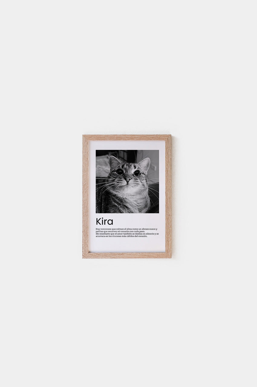 Nuestro marco rústico que da la ilusión de madera natural es perfecto para destacar la ternura de tu gatito con un toque orgánico y minimalista.